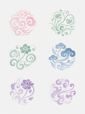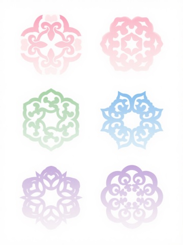 纯色背景上,以规整排布方式呈现的同风格系列素材集合,包含6个完全不同的敦煌风格传统纹样元素内容,保持与原图一致的精致线描轮廓、繁复对称结构和装饰性细节特征,整体画面色彩变换为新的和谐配色方案,延续原有的华丽典雅氛围与东方美学韵味,无任何文字和标识元素。