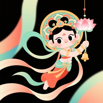 敦煌壁画风格系列素材集合,规整排布于纯色背景之上,整体色彩变换为四个不同色调组合。每幅画面均保持唐代飞天仕女的经典元素类目与壁画质感:剥落的矿物颜料纹理、古朴的线条勾勒、飘逸的飘带与华丽的珠宝装饰。第一幅以朱砂红与石绿为主色调,展现反弹琵琶的飞天;第二幅采用藤黄与靛蓝配色,描绘手捧莲花的伎乐天;第三幅运用赭石与群青组合,呈现吹奏笙箫的飞天仙子;第四幅则以石青与土黄为基调,刻画手持箜篌的仙女形象。所有人物姿态各异,衣袂飞扬,保持统一的视觉层级与敦煌壁画特有的斑驳风化效果,形成风格统一、元素不同的系列化设计,整体构图均衡对称,信息传达清晰,具有浓郁的中国传统艺术气息与装饰美感。