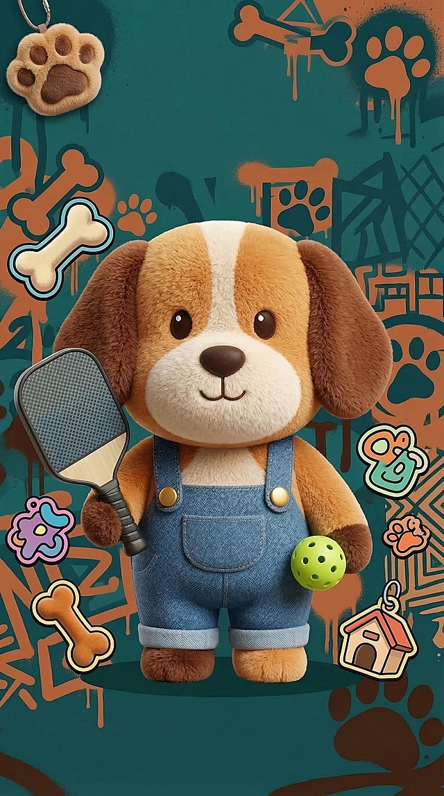 将这张卡通小狗图的外部黑色描边改成清晰的实线,保持原有配色、图案和整体风格不变详情