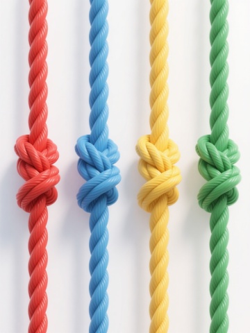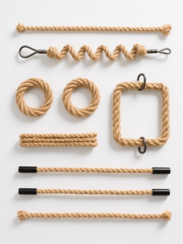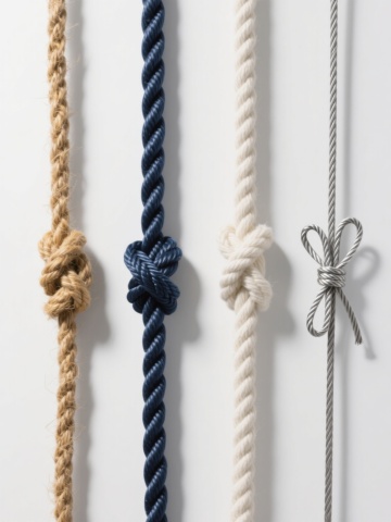 白色纯色背景上,规整排布四个完全不同材质的同元素同造型波浪线系列素材集合。波浪线保持原图中流畅连续的“W”形曲线造型,线条粗细均匀,边缘略带手绘感的轻微不规则。第一个波浪线呈现光滑细腻的陶瓷材质,表面有柔和的哑光光泽,淡蓝色调;第二个为粗糙的编织麻绳材质,纹理清晰可见,米白色;第三个是带有金属反光质感的不锈钢材质,银白色,表面有细微的拉丝纹理;第四个是半透明的磨砂玻璃材质,淡青色,边缘有柔和的光晕效果。整体设计简洁现代,四个波浪线等距排列,视觉上形成统一又富有变化的系列感,信息传达清晰直接,具有良好的设计感和素材实用性。