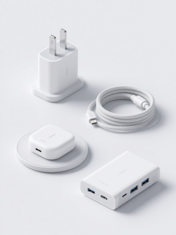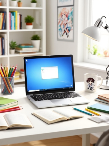 3D渲染风格的现代办公场景,极简主义设计,柔和的自然光从右侧百叶窗斜射进来,在白色桌面和浅灰色墙壁上形成清晰的光影条纹,银色超薄笔记本电脑屏幕显示着不同样式的风景壁纸(如星空夜景、热带雨林、城市天际线),机身倾斜放置在桌面上,连接着不同款式的外接设备(如圆形无线充电器、白色外置光驱、金属质感U盘),整体色调保持灰白为主的冷色系,营造出简洁、专业、科技感的氛围,画面构图采用斜对角线布局,物体边缘锐利清晰,表面有细腻的金属磨砂质感和轻微反光,留白充足,视觉焦点集中在笔记本与外接设备的组合上。