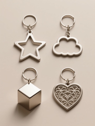 3D立体风格项链系列素材集合,纯色背景,6个完全不同造型的项链规整排布,均保留核心的爱心吊坠与环绕星形装饰元素,材质与设计各具特色:1. 银白色金属链搭配镶嵌透明水晶的银白色爱心吊坠与星形装饰,呈现经典简约风格;2. 金黄色金属链搭配金黄色爱心吊坠与星形装饰,表面光滑有金属光泽,尽显奢华感;3. 多巴胺风格项链,采用鲜艳的粉色金属链,爱心吊坠为亮黄色,环绕的星形装饰分别为蓝色、绿色和橙色,色彩明快活泼;4. 玫瑰金色金属链,爱心吊坠为渐变粉色水晶材质,星形装饰镶嵌细小红色宝石,温柔浪漫;5. 哑光黑色金属链,爱心吊坠为黑色滴胶材质,星形装饰为银色哑光,打造酷感十足的暗黑风格;6. 链条为银色与金色交织的双色设计,爱心吊坠一半为银色镶嵌白色水晶,一半为金色镶嵌香槟色水晶,星形装饰也采用对应的双色拼接,展现独特的撞色美感。每个项链都具有清晰的光影效果,高光与阴影过渡自然,立体感强,整体画面简洁干净,信息传达清晰,符合饰品展示的设计感。