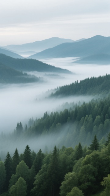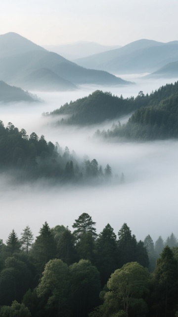 超写实风格的山脉全景图,晨光中的层叠山峦,近处是覆盖着茂密深绿色植被的陡峭山坡,中景为云雾缭绕的墨绿色山谷,山谷间蜿蜒流淌着清澈的河流,远景是渐变为淡蓝色的连绵山脉轮廓,天空中漂浮着白色的积云,整体色调以翠绿、墨绿和湛蓝为主,光线明亮柔和,呈现出宁静悠远的自然氛围,展现不同层次山脉的起伏变化和丰富细节。