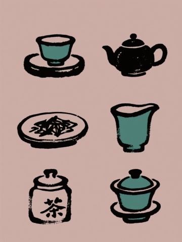 高清晰写实风格的茶元素系列素材集合,六个完全不同的茶相关元素规整排布在纯白色纯色背景上,保持透明玻璃材质的细腻质感和金黄茶水的通透光泽,光影效果统一为柔和的顶部光源,阴影清晰自然。第一个元素:透明玻璃盖碗中盛放着嫩绿的碧螺春茶叶,茶汤清澈;第二个元素:紫砂茶壶搭配四个小茶杯,壶嘴微微倾斜,仿佛刚倒出茶水;第三个元素:透明玻璃公道杯下方摆放着三个不同品种的干茶样本,分别是红茶、绿茶和乌龙茶;第四个元素:青瓷茶杯中漂浮着几朵茉莉花,茶汤呈现淡黄色;第五个元素:黑色陶制茶则中装满了条形的武夷岩茶,旁边放着一把竹制茶针;第六个元素:透明玻璃茶壶中浸泡着普洱茶饼,茶汤呈深红色,壶身上有简约的线条花纹。所有元素保持统一的写实风格和光影处理,整体构图平衡对称,每个元素独立成组又相互协调,形成完整的茶元素系列集合。