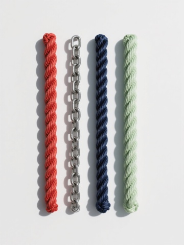 纯色背景上规整排布的六个完全不同的波浪线元素系列素材集合,每个波浪线拥有独特的材质、形态粗细和颜色,包括:1. 纤细的金色金属光泽波浪线,边缘锐利,呈现精密的工业质感;2. 粗粝的深红色磨砂陶土波浪线,带有细微的颗粒纹理和手工感;3. 半透明的天蓝色玻璃波浪线,表面光滑,带有柔和的光影折射效果;4. 柔软的鲜绿色毛绒波浪线,线条边缘有自然的绒毛质感,呈现温暖的织物特性;5. 厚重的深紫色大理石纹理波浪线,带有自然的石纹肌理和渐变色彩;6. 轻盈的亮黄色泡沫材质波浪线,表面有细小的气泡孔洞,呈现蓬松的轻盈感。所有波浪线元素保持波浪形态的核心内容,但在粗细、曲度和整体造型上各具特色,整体布局整齐有序,背景纯净无干扰元素。