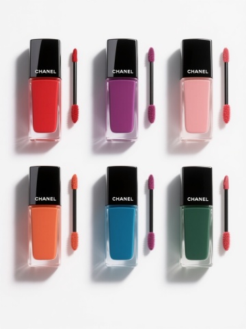 六款不同美妆产品的系列素材集合,保持与原图一致的高清写实摄影风格,白色纯色背景,明亮均匀的正面光源,清晰锐利的细节,高对比度,黑色与金色为主的奢华配色方案,物体边缘清晰无阴影。从左到右、从上到下规整排布:1. 黑色方形外壳带金色边框的腮红膏,盒盖打开露出粉橘色膏体,表面有细腻珠光;2. 黑色圆形眼影盘,金色包边,打开后展示四色哑光眼影,分别为深棕、浅棕、米色和香槟色;3. 黑色细长圆柱形睫毛膏,金色瓶盖,刷头部分露出细密黑色刷毛;4. 黑色方形带金色logo的粉饼盒,盒盖半开,露出细腻的白色蜜粉;5. 黑色与金色相间的唇釉,透明瓶身可看到深红色液体,金色按压泵头;6. 黑色方形眉粉盒,内含双头眉刷,打开后有深棕和浅棕两色眉粉,带有金色眉粉勺。所有产品保持与原图口红相同的高端质感、清晰纹理和专业商业摄影的光影效果,整体构图整齐对称,视觉层级统一。