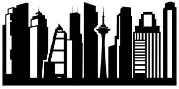 5. 扁平风格的上海城市天际线插画,以渐变的灰色和蓝色为主色调,采用垂直式构图压缩建筑间距,金茂大厦作为画面视觉中心,底部水面用水平粗线条表现,倒影呈现水平错位效果。