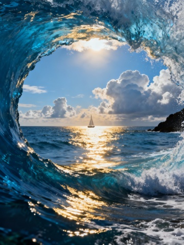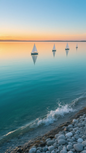一幅展现帆船在广阔海面上航行的摄影作品,整体呈现温暖的日落色调,天空从顶部的明亮橙黄色逐渐过渡到底部的柔和橘红色,巨大的金色太阳位于画面上方中央,光芒万丈,在平静如镜的海面上投射出一条长长的、闪烁着金色光芒的倒影,延伸至画面下方中央。一艘白色的单桅帆船正航行在这片金色的海面上,帆船体积较小,位于画面中下部,船帆饱满,清晰可见,船身及船帆在水面上形成清晰的倒影。海面呈现出从近景的深蓝色向中远景的金黄色渐变的色彩层次,水面波光粼粼,细节丰富,展现出写实的海水质感和光影效果。画面采用极简的构图,大面积的天空和海面形成开阔的留白,营造出宁静、悠远、壮丽而又充满希望的氛围,没有任何文字、LOGO、二维码或多余元素干扰主体视觉。