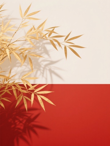 极简中式风格的竹叶背景设计,以大面积纯净留白为基调,右侧纵向舒展的淡灰色竹叶与竹枝构成主要视觉元素,叶片边缘清晰锐利,竹节线条简练流畅,整体呈现出淡雅水墨般的半透明质感,光影柔和均匀,营造出宁静空灵、意境悠远的东方美学氛围,构图遵循留白艺术原则,视觉层级分明,信息传达简洁含蓄,尽显中式传统雅致韵味。
