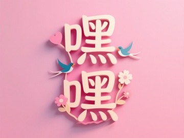 甜美卡通插画风,大字“嘿嘿”搭配小鸟与花朵,营造欢乐节日氛围。
