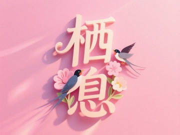 甜美清新插画风,大字“栖息”配以小鸟和花朵,营造春日温馨氛围。