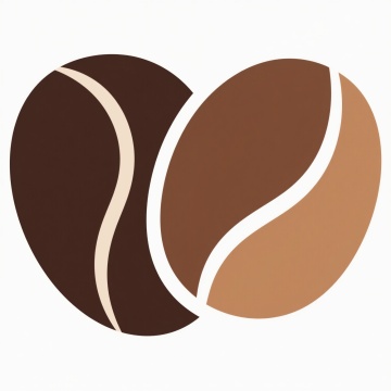 极简主义风格的咖啡豆图标设计,两个完整的咖啡豆以倾斜角度交叠排列,主色调为深棕色和浅棕色的渐变组合,咖啡豆表面有流畅的白色弧形线条勾勒轮廓,整体造型简约扁平,线条光滑无笔触纹理,白色背景纯净,构图居中对称,视觉层级清晰,突出咖啡豆的核心形态,无任何文字和装饰元素,信息传达直接高效,具有现代简约的设计感。