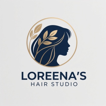 极简风格logo设计,白色背景,圆形构图内包含抽象女性侧面轮廓与自然元素的创意组合,整体造型流畅优雅,采用全新的配色方案(非黑白),设计元素需体现美发工作室的行业属性与美感,保持简洁现代的视觉语言,确保标志具有高度识别性和专业感。