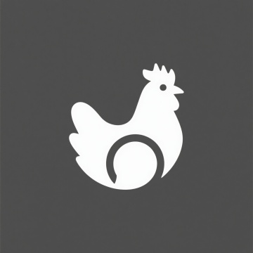 现代感扁平风设计,简洁几何鸡形图案,黑白对比鲜明。