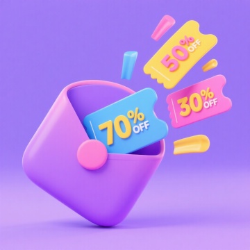 一套6张系列素材集合,每张均为规整排布的单一元素造型图案,保持简约现代风格,采用纯色背景。第一张:半透明渐变红色礼盒,顶部系着金色蝴蝶结,礼盒呈现轻微立体感,边缘有柔和高光和阴影,整体通透光滑;第二张:半透明渐变优惠券,带有虚线剪切边和折扣标识,保持与礼盒一致的光影质感和简约设计;第三张:半透明渐变喇叭造型,喇叭口朝右,线条流畅,体现现代简约风格;第四张:半透明渐变鼓掌手势,双手掌心相对呈鼓掌状,手指圆润,保持整体通透感;第五张:半透明渐变一堆金币,金币堆叠呈金字塔状,表面有光泽,体现金属质感;第六张:半透明渐变购物车,车筐为网格状,带有把手和轮子,造型简约现代,所有元素均保持统一的半透明渐变效果、光影处理和简约设计语言。