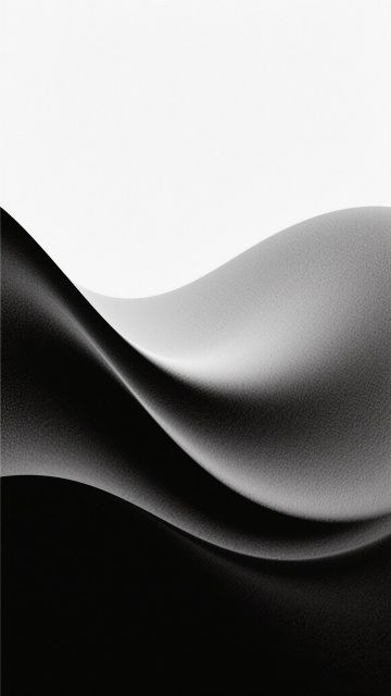 黑白渐变背景,具有流动感的波浪形态,从画面上方的亮白色平滑过渡到下方的深黑色,呈现出柔和的光影层次和优雅的曲线韵律,整体风格简约现代,带有磨砂质感的笔触和细腻的纹理变化,营造出宁静而富有深度的抽象氛围。