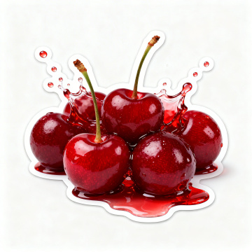 平面设计风格,以红色为背景,上面有多个手绘风格的樱桃图案,樱桃为鲜红色,带有高光效果,绿色的叶子,画面中央有红色手写体“Cherry”字样,整体设计简洁明快,充满童趣和夏日氛围,樱桃和叶子分布均匀,构图平衡。