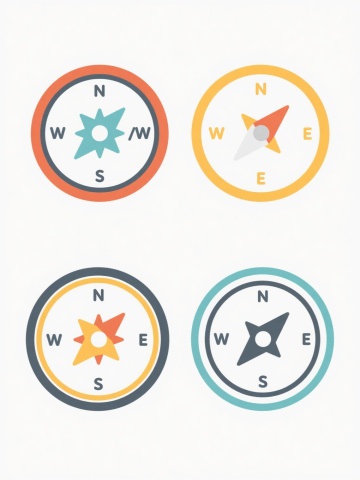 一系列6个规整排布的现代简约风格图标,每个图标均为单一纯色背景,整体色彩各不相同但保持协调统一的色调范围,图标主体采用简洁流畅的线条勾勒,形态为扁平化设计,无渐变和立体效果,包含与原地图定位标记同风格的6种不同类目标识元素,每个元素均具有清晰的轮廓、简约的内部填充和细微的装饰性线条细节,所有图标排列整齐,间距均匀,形成视觉上协调一致的系列素材集合。
