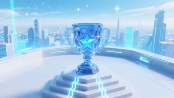 俯拍镜头,在一片被霓虹光束编织成的未来音乐节场地上,巨大的透明亚克力舞台悬浮于半空,七彩激光束如灵动的光蛇般在半透明的空气层中穿梭,台下由量子点材料构成的观众群体呈现出柔和的荧光剪影,他们手中的全息荧光棒随着音乐节奏闪烁变幻,空中飘落着极细的纳米级彩色粒子,整体画面以简洁的高饱和冷色调霓虹蓝与活力橙为主,保留音乐节激情氛围却尽显干净利落的科技感舞台场景。