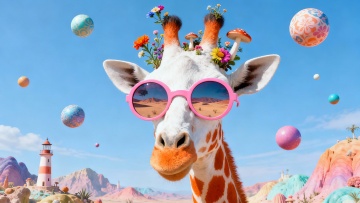 清新软3D风,卡通感海岛场景,椰树、躺椅与救生圈,夏日度假氛围。