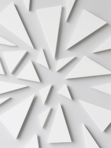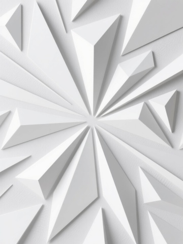 极简主义风格装饰图案,浅灰色背景上分布着多个不规则的白色几何图形,包括大小不一的三角形和多边形,线条简洁利落,图形边缘清晰,整体布局呈现出放射状的动态感,风格干净纯粹,无任何文字及复杂元素,仅作为装饰性图形元素使用,保持简洁的纹理样式和清爽的视觉效果。