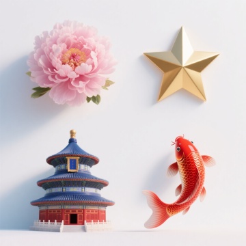 中国传统珐琅彩工艺风格的系列冰箱贴设计,采用纯色背景,保持原图的蓝红金主色调与细腻的金属描金边框,每个冰箱贴均具有立体浮雕质感和精致的镂空花纹。四个冰箱贴造型分别为:1. 天坛祈年殿配以祥云和粉色牡丹,底部缀有蓝色流苏吊坠;2. 故宫角楼搭配仙鹤与梅花,边缘饰以回纹图案;3. 苏州园林月洞门结合荷花与鲤鱼,点缀珍珠般的繁星;4. 敦煌飞天反弹琵琶造型,环绕飘带与莲花纹样,每个冰箱贴均保持相同的扇形轮廓和金色挂坠设计,整体呈田字形规整排布,展现统一的中国风美学与传统文化元素。
