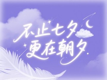 梦幻插画风,大字设计,七夕主题,云月点缀,浪漫温馨。