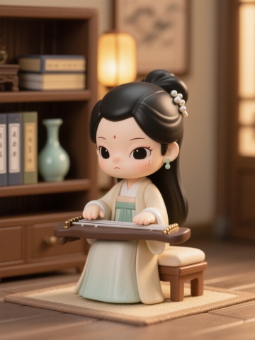 软3D风中式古典卡通少女弹古筝,温馨雅致,尽显传统文化韵味。