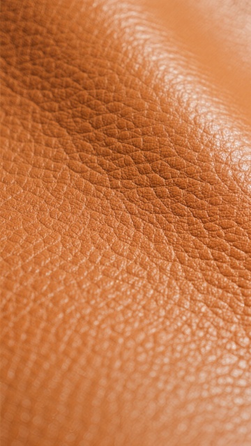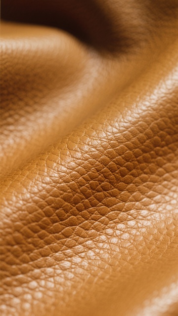 高质量棕色皮革材质特写,呈现自然细腻的荔枝纹肌理,表面带有柔和的光泽感,整体色调为温暖的棕橙色,光线均匀柔和地洒在皮革表面,凸显出皮革的质感与纹理细节,无任何文字或图案,仅展示纯净的皮革材质本身。