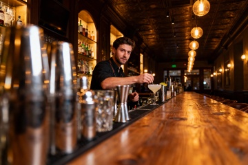 工业感与复古风交织的酒吧空间,混凝土肌理墙搭配金属吊灯,几何造型酒架点缀其间,暖光营造静谧氛围,新粗野风与质朴感完美融合。