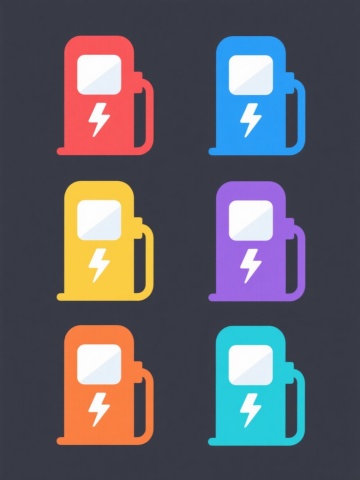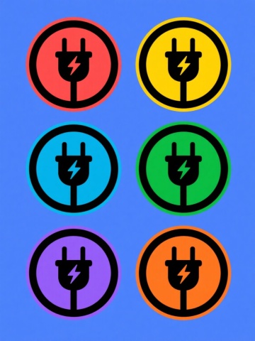 一组六个不同配色系列的规整排布素材集合,每个素材均为圆形图标,中心是经过造型变换的白色闪电符号,闪电线条更加锐利且带有轻微的几何棱角感,外圈为不完整的圆环与圆点组合,背景为纯色且无渐变效果。六个图标按2x3网格整齐排列,每个图标保持相同的元素内容和变换后的造型,仅整体色彩方案完全不同:第一个为深蓝色背景配浅蓝色图形,第二个为橙色背景配黄色图形,第三个为紫色背景配粉色图形,第四个为红色背景配深红色图形,第五个为棕色背景配米色图形,第六个为青色背景配蓝色图形,所有图标风格统一为简约现代的矢量设计,色彩鲜明且对比清晰,无任何文字、二维码及多余装饰元素。