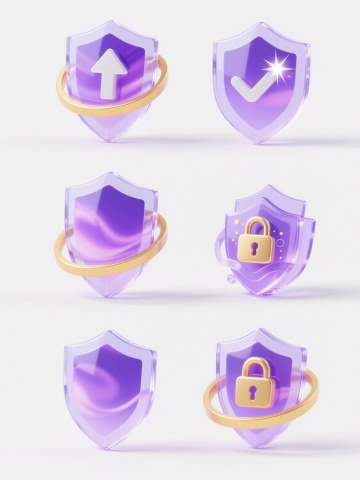 科技感十足的软3D风设计,盾牌与锁元素象征安全,色彩渐变展现现代创意。