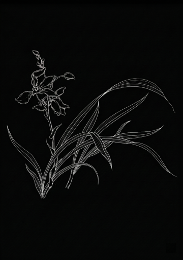 《梅兰竹菊之兰花》古典工笔风兰花,细腻描绘,水墨韵味,典雅边框设计。