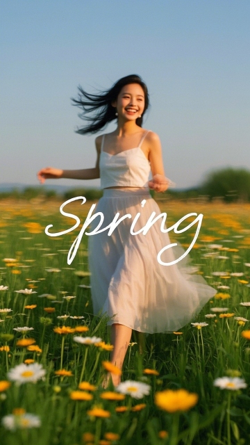 春日花海,少女轻舞,水彩风柔美浪漫,清新唯美的实景印象画派。