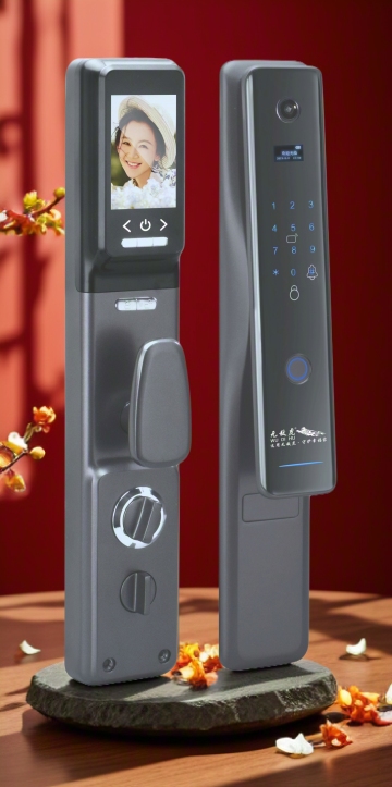 近景特写,在一栋现代简约风格的浅米色外墙住宅旁,一个镜面质感的白色安防摄像头稳固安装在深灰色金属支架上,镜头在清晨柔和的自然光下泛着冷冽光泽,清晰投影落在洁净墙面上,下方浅木色围栏边绿植舒展,背景是澄澈湛蓝天空,画面干净简洁,尽显科技居家融合的质感与清晰感,用于背景素材适配。