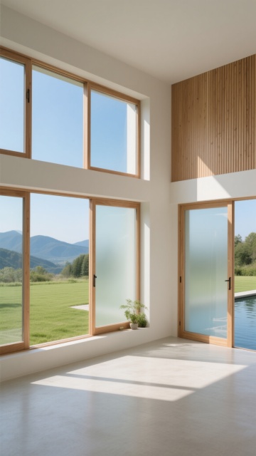 极简主义风格的卫生间室内设计,整体采用米白色与浅木色的柔和配色方案,温暖的嵌入式灯带与顶部筒灯提供均匀柔和的照明,营造明亮通透的氛围。墙面和地面铺设大块浅色哑光瓷砖,线条简洁流畅。不同场景下的卫生间摆设:有的配备悬挂式白色洗手台,台面整洁,搭配简约白色水龙头,上方是带储物功能的镜柜,旁边装有黑色金属毛巾架;有的设置独立玻璃淋浴房,内部有壁龛收纳洗浴用品,黑色淋浴喷头与五金件形成精致对比;有的墙面悬挂线条简约的黑白花卉装饰画,下方嵌入木质灯带壁龛,摆放香薰和装饰摆件;有的空间内放置智能马桶,旁边设有带木质搁板的收纳区。整体设计注重功能性与美学的平衡,空间布局合理,细节处理精致,呈现出现代、干净、舒适的卫生间环境。