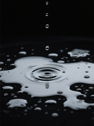 在纯白色背景上,漂浮着大量大小不一、形态各异的透明水珠,水珠表面带有柔和的高光和细微的反光,部分水珠周围点缀着极小的气泡和水滴,整体呈现出轻盈、通透、湿润的视觉效果,水珠分布自然且疏密有致,营造出清新、纯净的氛围。