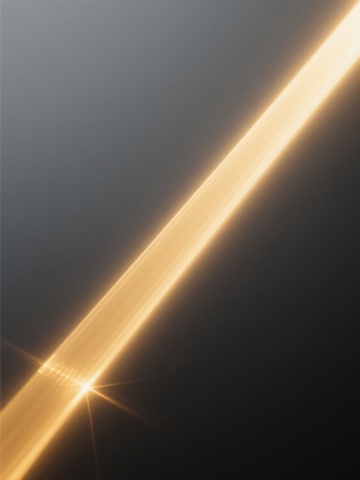 一束明亮温暖的金色光束从画面左上角向右下方倾斜射出,光线呈现出清晰的条状形态,边缘柔和过渡,光束内部有细腻的光晕效果,背景为深灰色至黑色的渐变,整体画面干净简洁,无任何杂物干扰,光线具有通透感和立体感,适合作为光束素材使用。