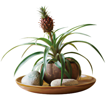一系列6个不同的室内绿植及园艺元素的集合,每个元素独立展示,采用与原图一致的高细节3D渲染风格,柔和的米白色纯色背景,温暖的米色、浅棕色、淡黄色和白色为主色调,精确的光影效果,清晰的材质纹理。元素包括:1. 浅灰色陶土花盆中的多肉植物组合,叶片饱满有光泽,点缀小石子;2. 透明玻璃花瓶插着干枯的尤加利叶和白色小雏菊,瓶口系着浅棕色麻绳;3. 复古铜色浇水壶,壶嘴弯曲,壶身有细微划痕,壶内装有半壶清水;4. 编织篮筐里的常春藤,藤蔓自然垂落,叶片呈心形,颜色从深绿到浅绿渐变;5. 白色陶瓷小花盆里的薰衣草,紫色花穗饱满,叶片细长;6. 木质托盘上的三小盆不同种类的迷你绿植,托盘边缘有自然木纹。所有元素排布规整,大小统一,间距均匀,保持相同的光照方向和阴影效果,整体呈现简洁、温馨、自然的居家园艺氛围。