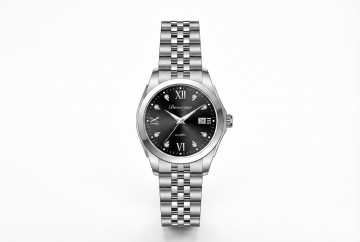 现代感与科技感融合的商务腕表,采用双色设计风与几何风,金属风表壳搭配浮雕风细节,绿色表带彰显时尚潮流与优雅气质。