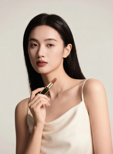 半身构图,亚洲年轻女性微微侧身45度,左手无名指轻触锁骨处珍珠项链的坠子,右手自然垂落于身侧,浅棕色中长发在柔和光线下呈现出蜜糖般的层次感,几缕发丝随动作轻轻拂过纤细的脖颈。自然妆容强调通透质感,浅棕色眉毛如自然生长般柔和,内眼线仅在眼尾处微微上扬,淡粉色眼影如晨雾般晕染眼窝,珊瑚色唇膏中央点缀着一丝透明唇蜜,光泽感底妆在偏侧光下展现出细腻的皮肤纹理。简约的金色几何耳坠随着头部微倾的弧度轻轻晃动,白色丝质吊带裙的肩带在肩胛骨处形成优雅的V形线条,背景是带有微妙纹理的奶油白,光线从左上方45度角温柔洒落,在颈部和锁骨处形成渐变的柔光过渡,整体氛围如同被时光定格的静谧午后,极简主义构图中蕴含着含蓄的优雅张力。