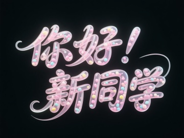 “你好!新同学”,立体泡泡字体设计,3D立体效果,软边缘处理,粉彩棉花糖材质表面覆水光膜,字体透明,内部填充跳跳糖颗粒,UE5渲染,完美细节,干净纯黑色背景,排版简洁大气,视觉效果梦幻甜美,浪漫氛围,高级感,杰作