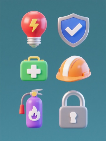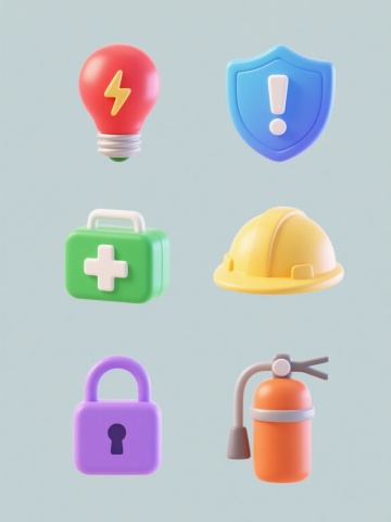 软3D风格系列素材集合,纯色背景,6个完全不同元素内容规整排布,保持元素类目。第一个元素为绿色背景上的立体购物袋图标,圆润造型,高光柔和,阴影细腻;第二个元素为蓝色背景上的立体咖啡杯图标,杯身光滑,带有弧形把手,底部有轻微投影;第三个元素为黄色背景上的立体书本图标,书页有层次感,书脊清晰,整体呈倾斜放置;第四个元素为红色背景上的立体相机图标,镜头突出,机身有圆润边角,细节丰富;第五个元素为紫色背景上的立体音乐符图标,音符线条流畅,具有立体感,悬浮于背景之上;第六个元素为橙色背景上的立体信封图标,信封开口处有折叠细节,整体造型简约大方。所有元素均采用统一的软3D风格,色彩鲜明,排布规整,视觉效果协调统一。