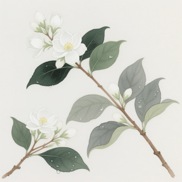 水彩风格插画,以纯白色为背景,画面中是一簇自然垂落的紫藤花,藤蔓呈优雅的曲线延伸,点缀着多朵盛开的紫藤花,花瓣呈现淡雅的紫色渐变,花心为明亮的黄色,搭配深绿色的椭圆形叶片,叶片边缘有细致的锯齿纹理,整体色调清新柔和,笔触保留了水彩特有的透明晕染效果和自然的水渍纹理,藤蔓、花朵和叶片的布局疏密有致,呈现出轻盈灵动的自然美感。