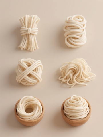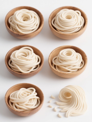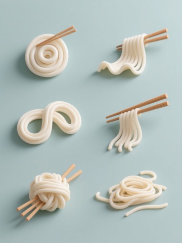 四个软3D风格食物图标规整排布在纯色背景上,保持相同的粗线条手绘风格,每个图标均以碗状容器为主体元素,采用简洁配色。所有图标采用统一的剪影处理和轮廓线条,整体呈现协调一致的系列感。第一个图标是热气腾腾的米饭,碗中盛满饱满的米粒,顶部有几缕向上飘散的热气线条;第二个图标是冒着香气的面汤,碗内有波浪状的面条,汤面上漂浮着绿色的葱花和几片菜叶,热气氤氲;第三个图标是堆叠的饺子,数个半月形饺子整齐地堆叠在碗中;第四个图标是切片的面包,几片长方形的面包片叠放在碗状容器内。所有图标线条圆润流畅,色彩明快且统一,具有清晰的视觉层级和高效的信息传达效率,整体设计简洁可爱,适合作为餐饮相关的系列图标使用。