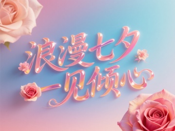浪漫七夕,大字风与液态风结合,3D效果展现梦幻甜美感,玫瑰点缀,营造浓情氛围。#七夕浪漫企划