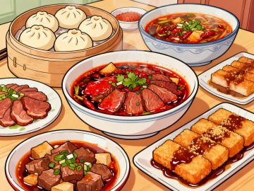 一系列6个不同美食的插画集合,保持日式美食插画风格,扁平化设计,明亮的纯色背景,每个美食都有丰富的食材细节和鲜艳的色彩,规整地排列在画面中。第一张是热气腾腾的寿喜烧,第二张是新鲜的寿司拼盘,第三张是酥脆的天妇罗,第四张是香浓的味增汤,第五张是美味的日式炸鸡,第六张是清爽的冷面。所有美食都以相同的视角和构图呈现,形成统一的系列感。