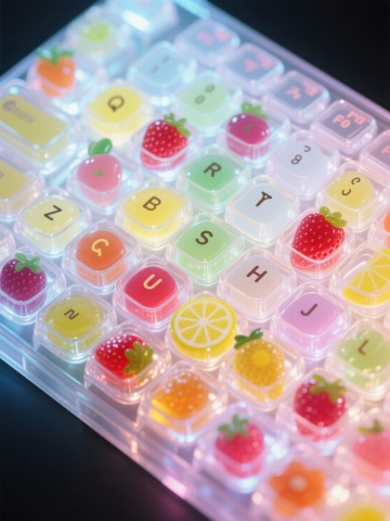 清透玻璃风键盘,3D轻拟物水果键帽,甜蜜可爱,柔和光影营造舒适治愈感。