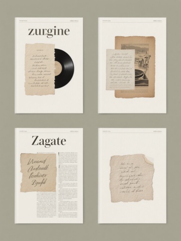 杂志风格设计,四个规整排布的素材,纯色背景,每个素材包含不同造型样式的复古元素。核心元素包括黑色密纹唱片(带有白色标签,标签上有“Music,”字样)、泛黄的旧纸张、手写体或印刷体英文文字片段、复古植物线条插画。整体采用拼贴艺术手法,展现出怀旧、文艺的氛围。光影柔和,具有轻微的质感和纹理,色彩以黑、白、米黄、浅灰为主,色调统一和谐。设计注重视觉层次感,元素排布疏密有致,具有杂志排版的简洁与精致。