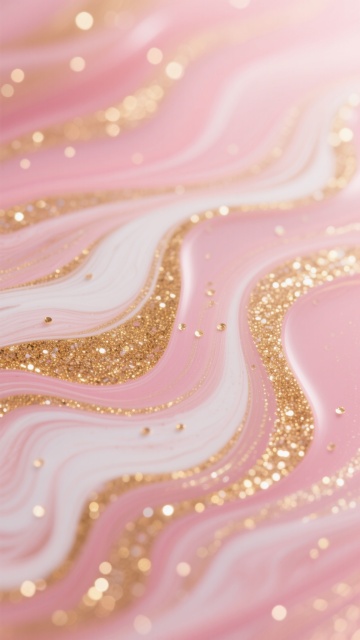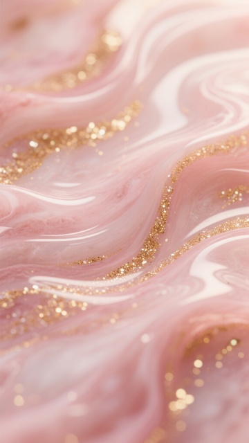 粉色与白色交织的流体艺术背景,呈现出柔和流动的波浪状纹理,色彩从浅粉到深粉渐变过渡,表面点缀着细小的气泡和闪光颗粒,整体质感光滑细腻,具有梦幻般的柔和氛围和动态美感,无文字及其他图案元素。
